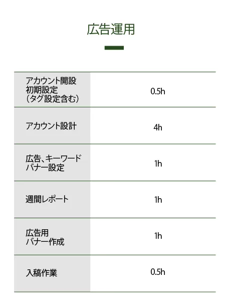 まるっとオマカセプランの定期MTGでは、プラン内の集客施策について実績の報告、課題にあわせた施策提案をさせていただきます。また、レポートについては、プラン内に含まれておりますウェブ広告を運用して得られたデータを、様々な角度から集計・整理し、まとめられたものを毎月送付させていただきます。
